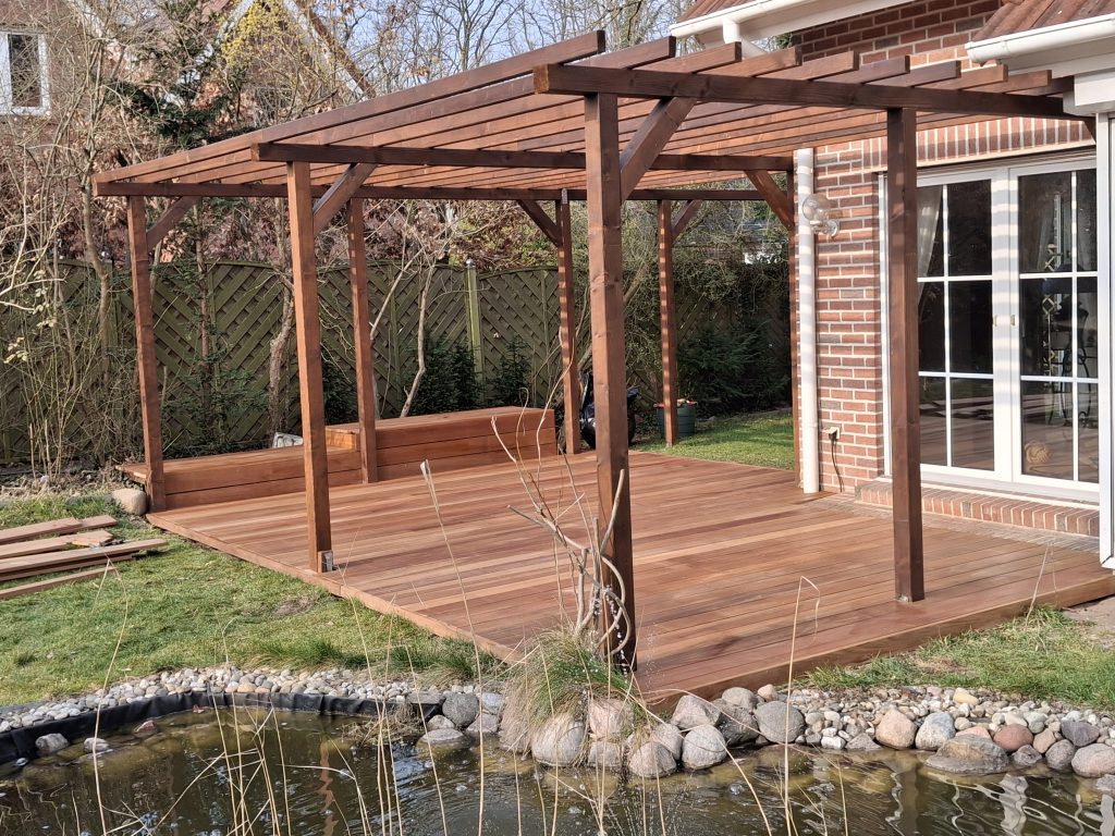 Unsere Pergolas bieten nicht nur Schutz vor Sonne und Regen, sondern setzen auch stilvolle Akzente in Ihrem Außenbereich. Wir entwerfen und bauen Pergolas, die sich harmonisch in Ihr Grundstück einfügen und zum Verweilen einladen.